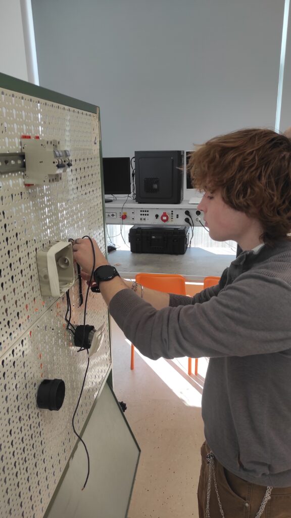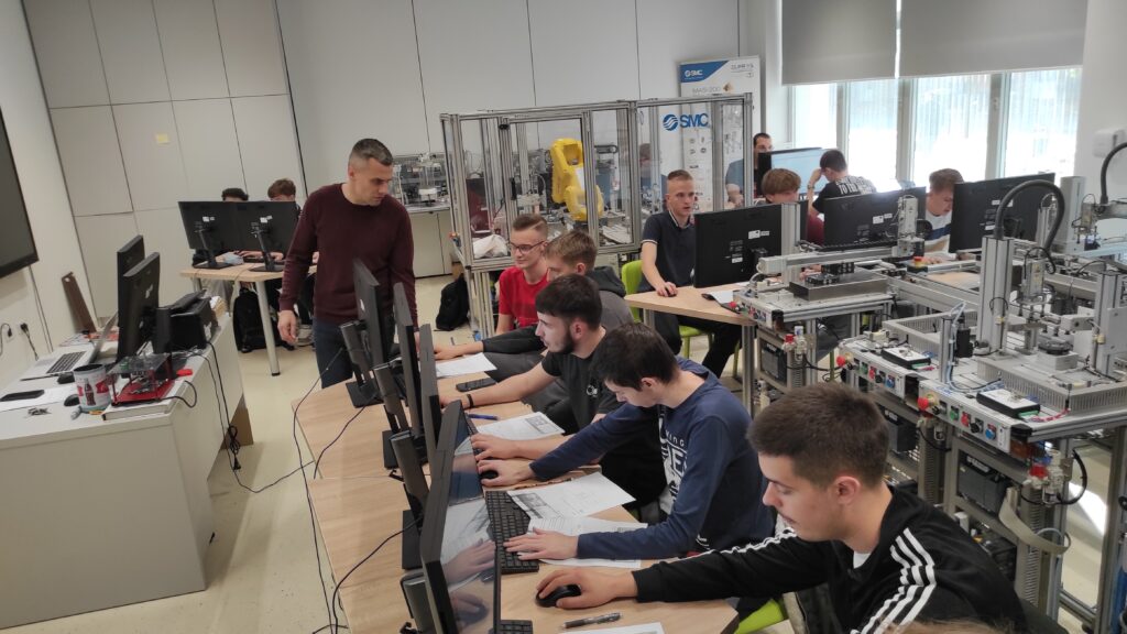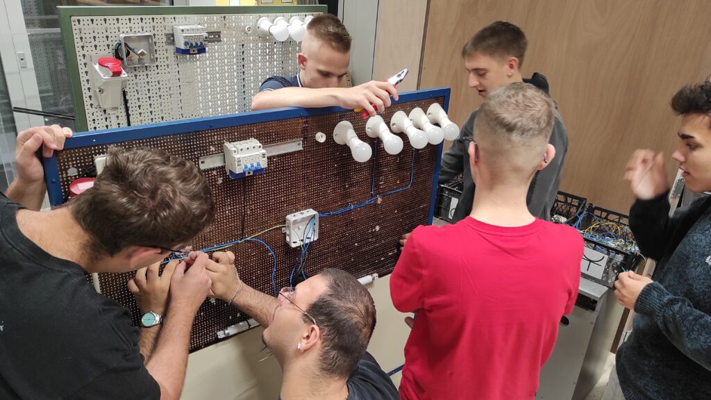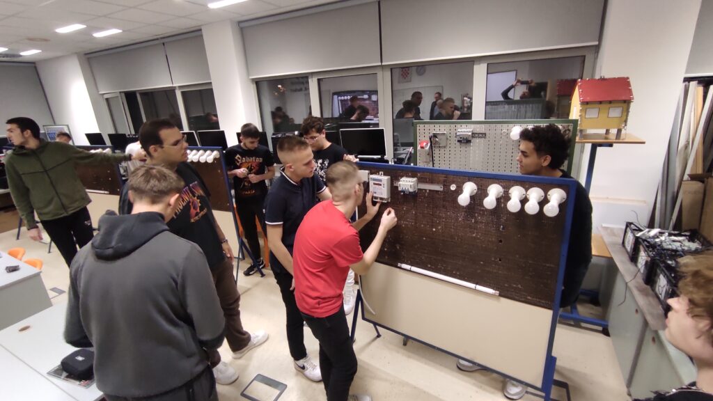 The group from Pécs was hosted by ELPROS students and teachers. During their stay, the guests visited classes in several vocational subjects and participated in workshops. Teacher Mario Ognjenović prepared a workshop on electrical installations and practical connection exercises, as an introduction to working on a smart home model developed in the project with teacher Alen Hmelin.